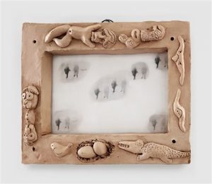 مصطفی نادر در آثار خود که آنھا را قاب-مجسمه می خواند به شکلی خیرهکننده تلفیقی از ھنر فولکلور، ھنر فراواقعی و ھنر بیانگرایی را در ھاون ریخته و با گوشتکوب شاعرانهی خود تا بدانجا آن را میکوبد که محصول نھایی را نمیتوان چیزی جز ھنر معاصر خواند. آثاری ھمزمان بازیگوشانه و مملو از شوخطبعی اما در عین حال ارائهدھندهی تصویری به غایت خاص و یکه از سواحلی است که قایق خیال و پاروی دستان او توانایی پھلوگیری در آنھا را داشته است. آثاری که نادر در این نمایشگاه ارائه میکند ھریک در پاسخ به عکسھای فلاحزاده خلق شده و ھمزمان ھر قاب-مجسمه در برگیرندهی موجوداتی است که ھمچون تماشاچیان به دور عکسھای فلاحزاده در چرخشاند درحالیکه با یک چشم به صحنهی عکسھای او مینگرند و با چشم دیگرشان ما را زیر نظر دارند.
