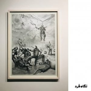 ناگفته نماند که فضای مه‌آلود و دودی سیاه که با ماسک‌­ها، کلاه‌­ها و چکمه‌ها همراه شده یادآورعکس‌های سیاه و سفید باقی مانده از جنگ‌های جهانی است. سیم‌­ها و تلفن‌­ها هم آدم را یاد بیسیم‌­های میدان جنگ می‌­اندازد و زمانی این یادآوری بیشتر تقویت می‌شود که فیگورهای معلق بین زمین و آسمان را می‌بینیم؛ انگار سربازانی­ اند که دارند با چتر فرود می‌­آیند. حتی موجودات بادکنک مانند معلقی که چیزی بین سفره ماهی و عروس دریایی‌اند هم بی­ شباهت به چتربازها نیستند یا آن چراغ ایستاده بالای میز. گوشی‌ها و سیم‌هایشان به همراه نگاه خیره­‌ی چشم‌های داخل تابلو به بیننده این‌طور القا می‌کنند که خبرچینی وجود دارد و راز مگویی گفته شده است. کرکره‌­ی راه راه و مرد نظاره­‌گر آدم را یاد جفریِ مخمل آبی می‌ا­ندازد. آن­جا که از رازی خطرناک باخبر می‌­شود و البته فاش­ کنندگان باید کیفر کار ناشایست خود را ببینند. چشم‌های پوشانده شده به همراه چراغ اتاق بازجویی بر وقوع این عقوبت گواهی می‌دهند.