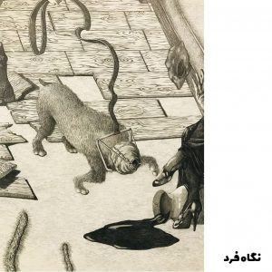 سرزمین نقش شده بر روی مقوا، فضای اسرارآمیزی است اما اسرارآمیزی­‌اش با وجود شبهه-خرگوش‌­ها به آلیس در سرزمین عجایب نمی‌ماند. بازنمایی روایتی است مبهم و دلهره‌­آور در فضایی سورئال. اگر رویا باشد قطعا کابوس است. اگر صحنه‌ای از فیلم باشد، طلسم شده‌­ی[5] دالی و هیچکاک است و اگر بخواهد واژه‌­ای باشد، آن واژه گروتسک است.