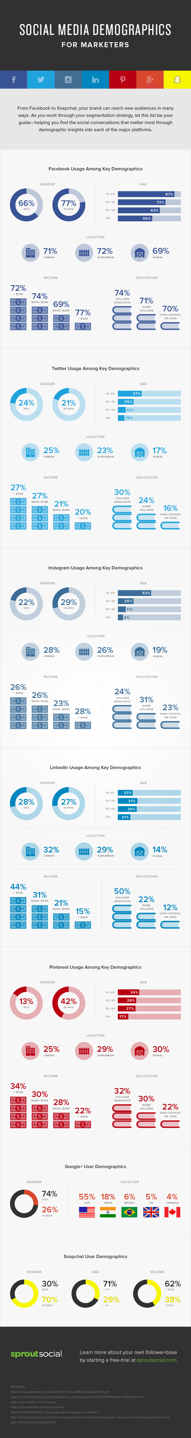 طرح دموگرافیک مربوط به سایر شبکه های اجتماعی را می توانید در اینفوگرافیک زیبایی که توسط شرکت Sprout Social تهیه شده مشاهده نمایید: