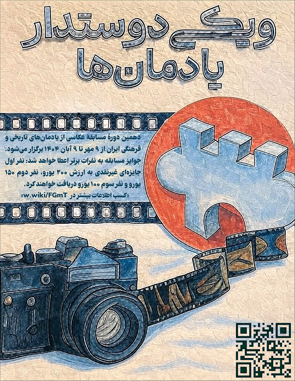 با افتخار اعلام میکنیم که مسابقهٔ عکاسی ویکی دوستدار یادمانها به منظور ماندگارکردن آثار ثبتشدهٔ ملی (یادمان) و غنیکردن مقالات ویکیپدیا با هدف بالابردن دانش و آگاهی همگان برگزار میشود. از تمامی عکاسان و علاقهمندان دعوت میشود تا در این مسابقه شرکت کنند و زیباییهای کشورمان را با دنیا به اشتراک بگذارند.
